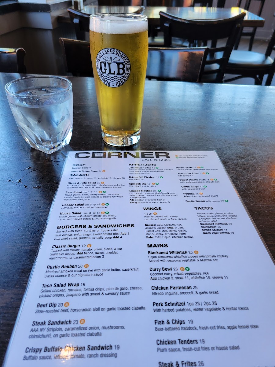 Indulge in their Burgers & Sandwiches, highlighted by the Classic Burger and the Rustic Reuben, each priced around CA$19 to CA$23. Don't miss the tantalizing Corner Bites, featuring crispy cauliflower and boneless chicken bites that promise to satisfy any craving.